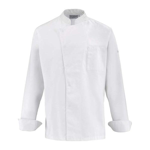 Veste professionnelle homme à col officier avec fermeture par grippers cachés.
