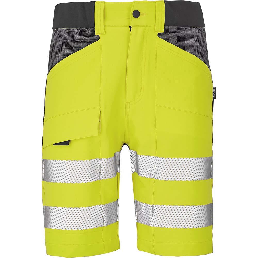 • Bermuda haute visibilité professionnel avec ceinture droite élastiquée et braguette zippée pour un confort et un ajustement optimaux
